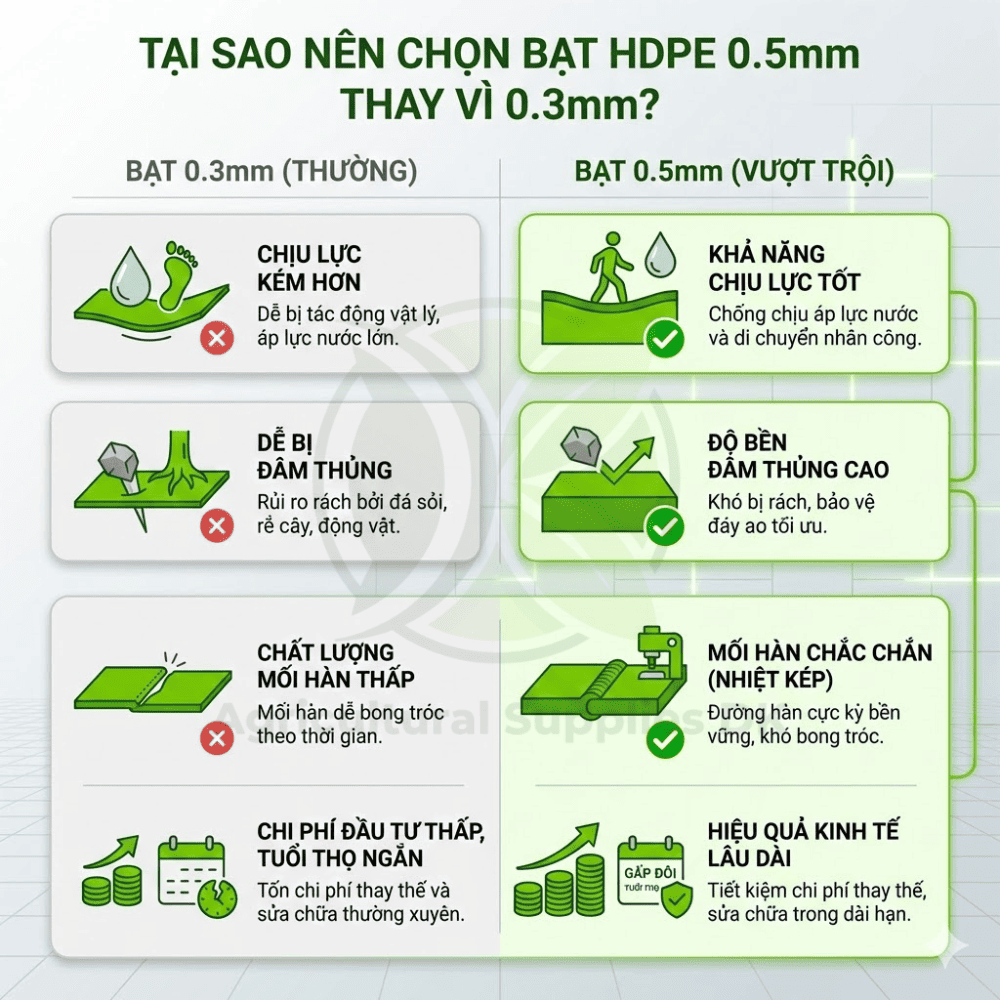 Bảng so sánh nhanh màng HDPE 0.3mm và 0.5mm