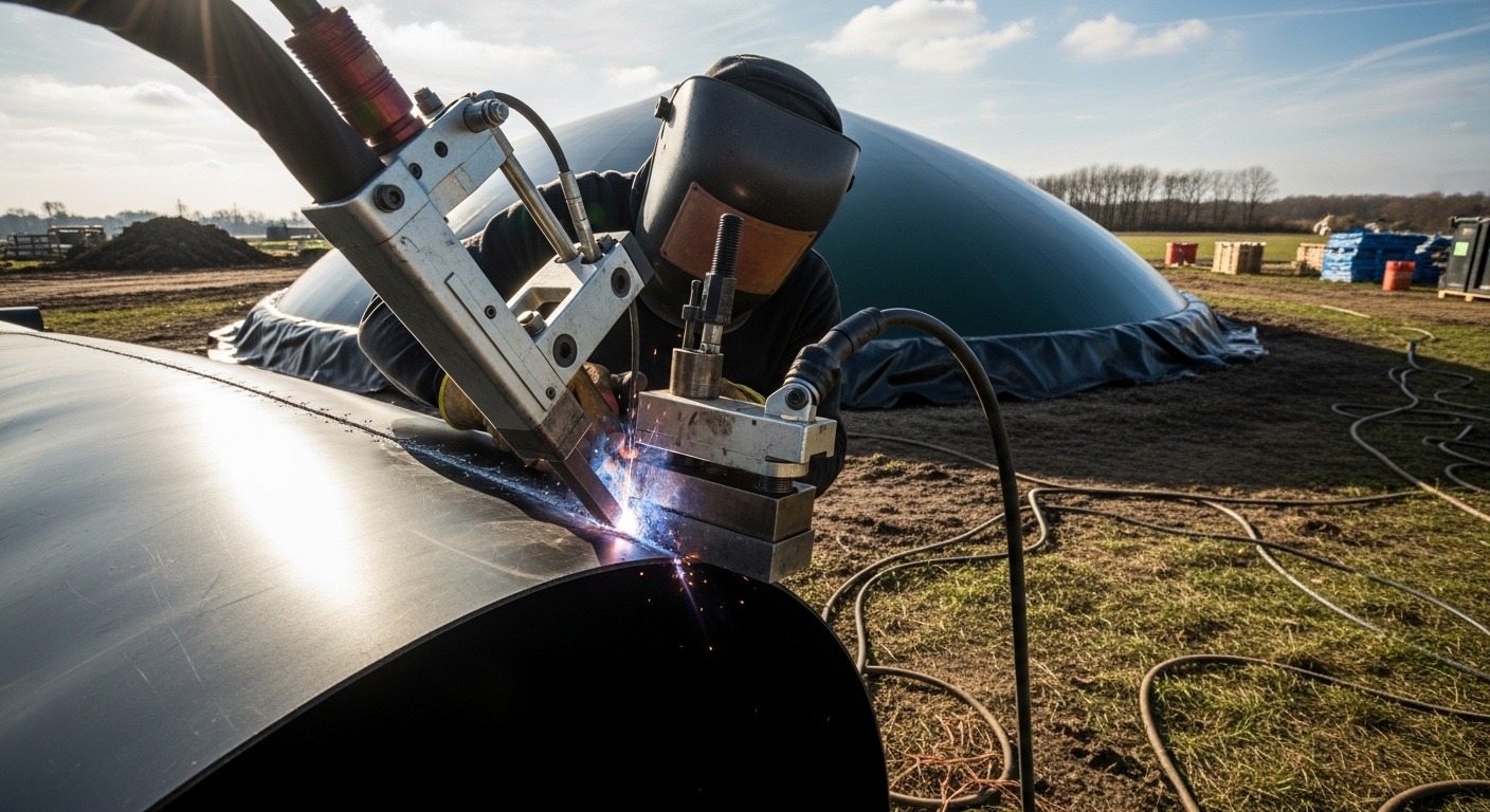 - Phương pháp hàn: Sử dụng máy hàn nhiệt kép (hàn nóng chảy) cho các đường dài và máy hàn đùn cho các góc cạnh, vị trí ống xuyên bạt.