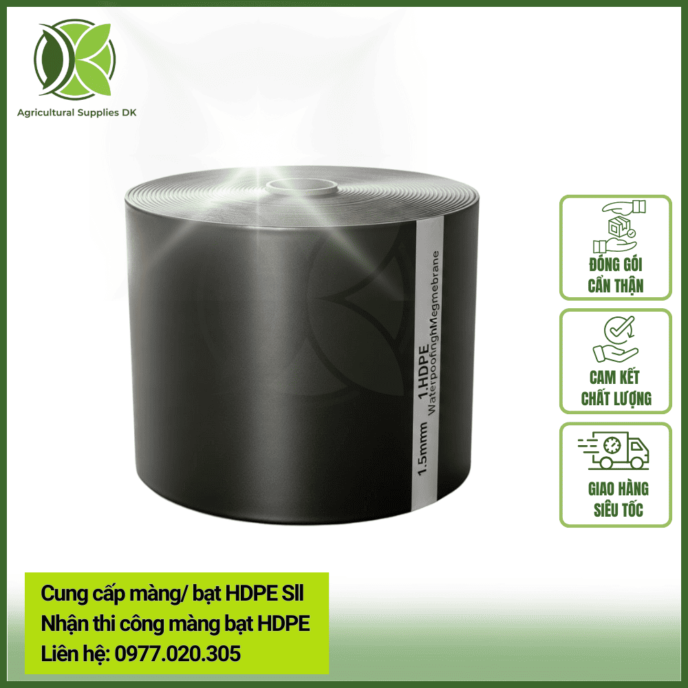 Màng HDPE chống thấm 1.5mm (tương đương 1500 micron) là loại màng polymer có độ dày lớn, được sản xuất từ 97.5% nhựa Polyethylene tỷ trọng cao nguyên sinh và 2.5% carbon đen cùng các chất ổn định nhiệt. Tại Việt Nam, đây là dòng bạt thường xuyên xuất hiện trong các bản vẽ thiết kế của các dự án vốn ngân sách hoặc dự án có vốn đầu tư nước ngoài (FDI).