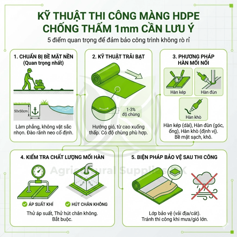 Kỹ thuật thi công màng HDPE Chống Thấm 1mm cần lưu ý