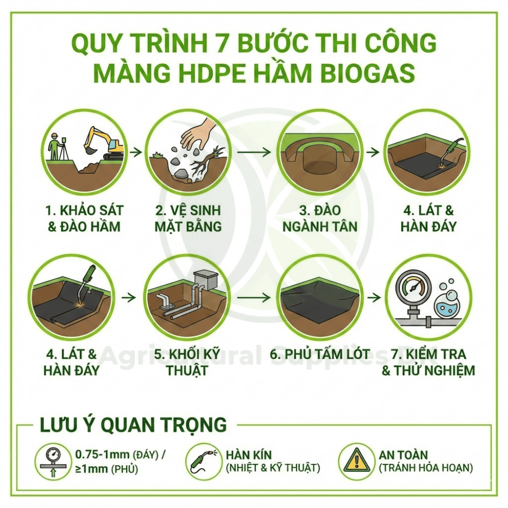 Quy trình 7 bước thi công màng HDPE cho hầm Biogas