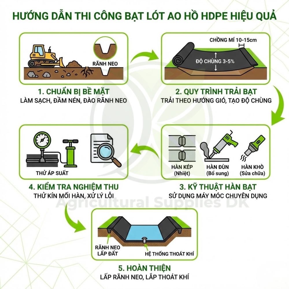Hướng dẫn thi công bạt lót ao hồ HDPE hiệu quả