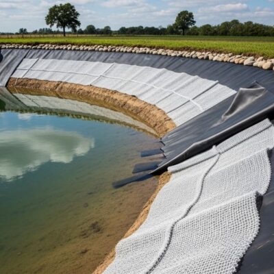 Vải địa kỹ thuật thường được dùng làm lớp lót bảo vệ các màng chống thấm (như màng HDPE) khỏi bị đâm thủng bởi các vật sắc nhọn trong đất đá.