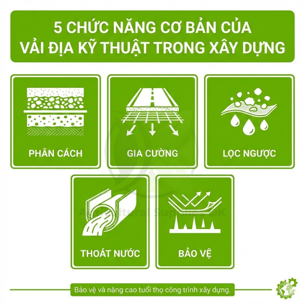 Tại sao các kỹ sư lại tin dùng vải địa kỹ thuật đến vậy? Câu trả lời nằm ở 5 chức năng cơ bản sau:
